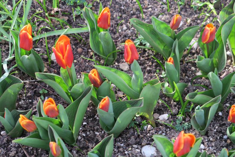 Ich überlege, das Blumenbeet am hiesigen Schloss im kommenden Frühjahr mit ein paar Tulpen aufzuhübschen. Welche Tulpe ist Eurer Erfahrung nach leuchtend farbig, sehr früh und vor allem kurzstielig (damit die Verlockung sinkt, die Stiele zu pflücken)?