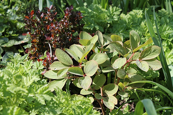 mein erster gedanke...ein P. lactiflora sämling. ich meine die treiben so rotbraunlaubig aus + vergrünen dann.