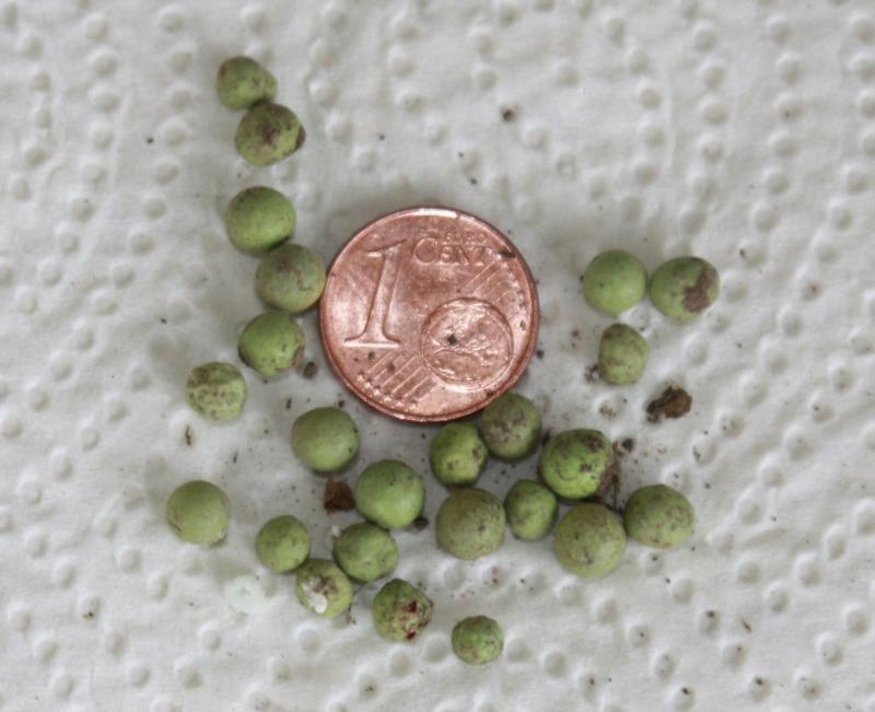 Hallo,ich häng mich mal hier an diesen Thread, wenns nicht passt gerne verschieben.Ich habe im Gewächshaus kleine Kugeln gefunden, die ich nicht zuordnen kann.Die sind- ca 4-5mm gross- grünlich, fast türkis- liegen, oberflächennah, mehrheitlich in der Erde, teilweise auch oben auf- die in der Erde sind Kugelrund, die oben liegenden etwas eingetrocknet- leichter als WasserZuerst dachte ich an Langzeitdünger, sowas habe ich aber schon seit Jahren nicht im Gewächshaus ausgebracht