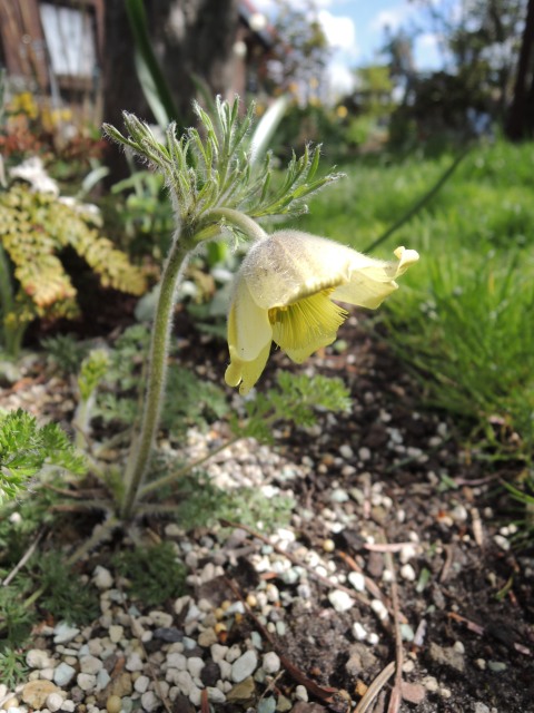 Eine gelbe Pulsatilla blüht heute. Name hat sie keinen, bzw. 'Pulsatilla lutea'