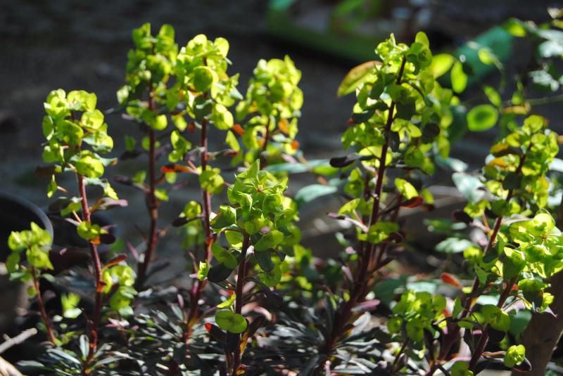 Im Garten blüht noch immer Pulmonaria 'Trevi Fountain', frisch vom Gärtner sind Aethionema 'Warley Rose' - beim nächsten Gärtner war die gleiche Pflanze 'Warley Ruber', was mir dem Farbton nach besser zu passen scheint ![]() | ![]() | ![]() | ![]() |