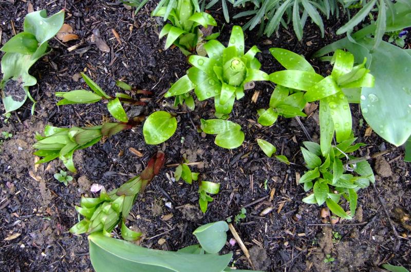Hier treibt von den im letzten Herbst gepflanzten Lilien erst die Hansonii aus. Von Henryi, Candidum und Regale fehlt noch jede Spur.