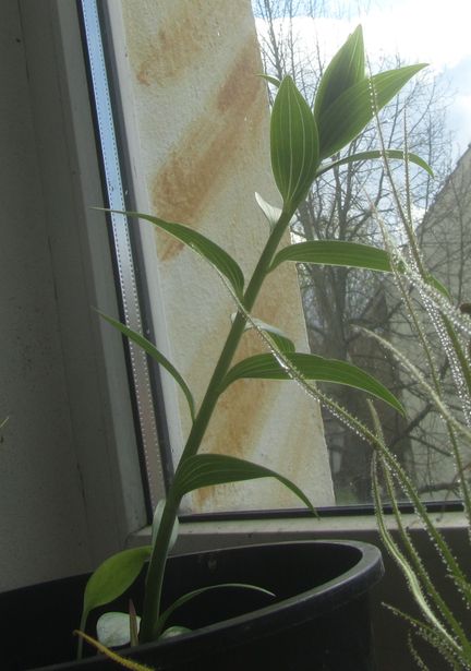 Ich eröffne mal das Lilienjahr mit einem etwas skurrilen Austrieb eines L. henryi, dessen Stängel ich über Winter stehen ließ.