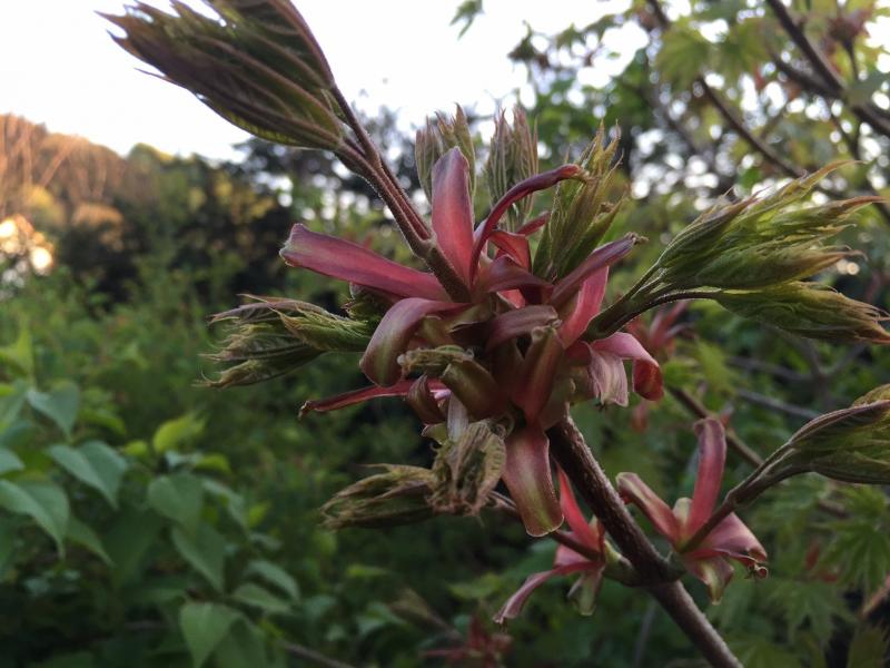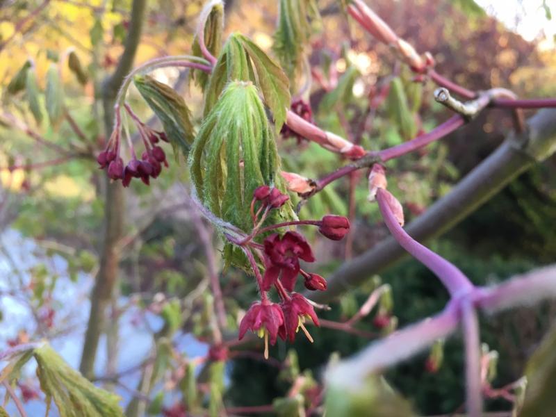Schön! :DDer Blattaustrieb ist bei uns noch nicht soweit. Doch es gibt die ersten Blüten.Vermutlich Acer japonicum 'Aconitifolium'