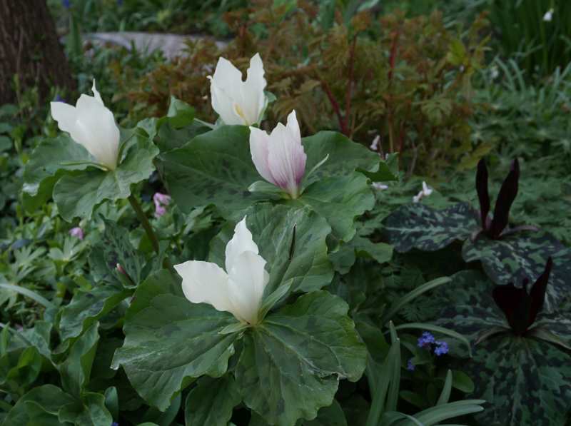 Das sieht aber nicht wie Trillium aus. Meine Sämlinge haben immer erst schmale Lilienblätter, so nach drei, vier Jahren echte blätter. Die auf deinem Foto sehen auch irgendwie "weich" aus. Müßten hart aussehen.Brunnera?