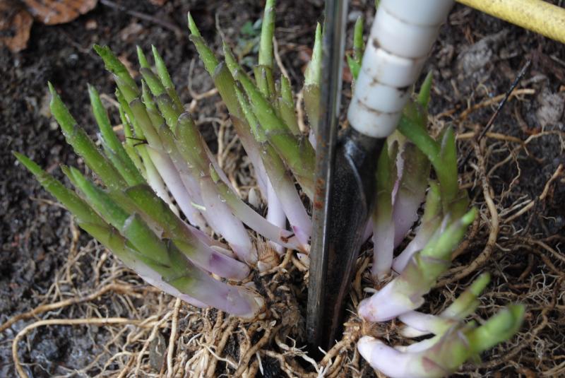 Ich habe gerade die bereits ausgetriebenen Hosta sicherheitshalber reingestellt. Dabei sah ich, dass im Winterlager schon die Schnecken aktiv waren.