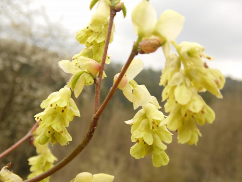 Noch ist der Strauch klein und wirkt vorallem, wenn man sich die Blütentrauben aus der Nähe betrachtet.Corylopsis spicata
