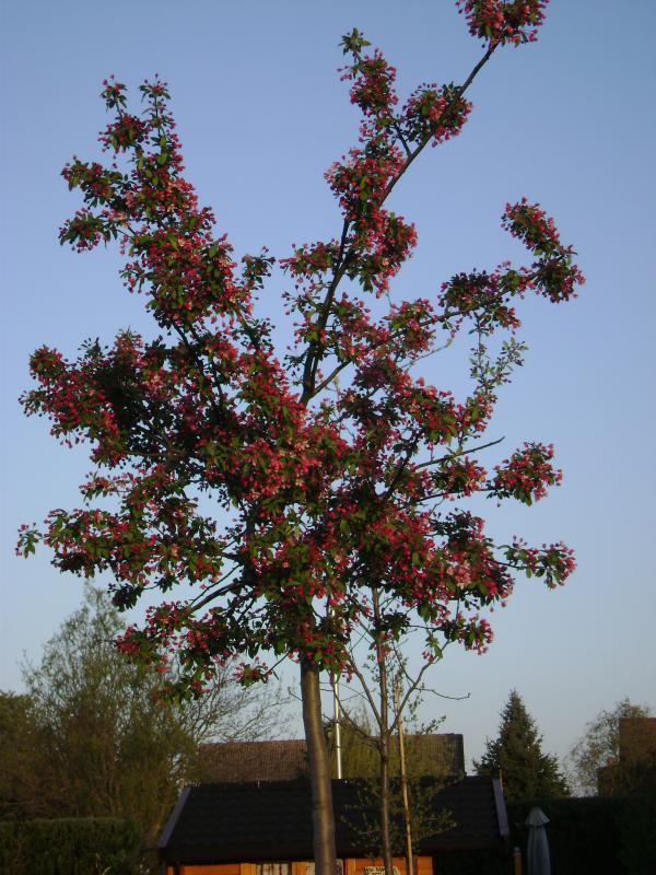 Malus floribunda im Abendlicht, er leuchtet wunderbar
