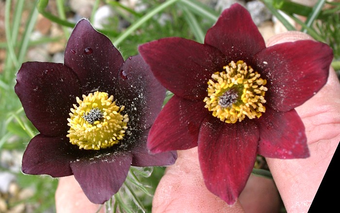 Pulsatilla rubra...habe mal 2 farbvarianten vom gleichen standort nebeneinander gehalten, damit man den unterschied besser erkennt.