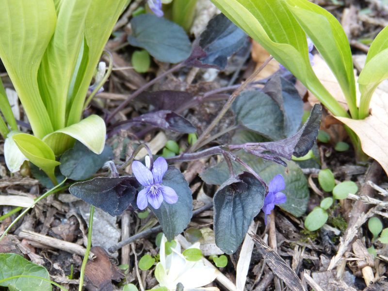 Viola labradorica oder auch Viola tiviniana hat hier offensichtlich optimale Bedingungen gefunden. Sie versamt sich reichlich. Aus einer Pflanze ist ein ganzer Teppich hervorgegangen.Mir gefällt besonders der rötliche Laubaustrieb.(Im Hintergrund das Wildschweinlauerzelt)