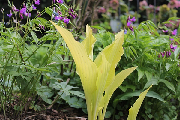 Biene, Deine Hostas sind einfach spitze!Bevor das mistige Wetter kam, leuchtete 'Chiquita' im Beet.