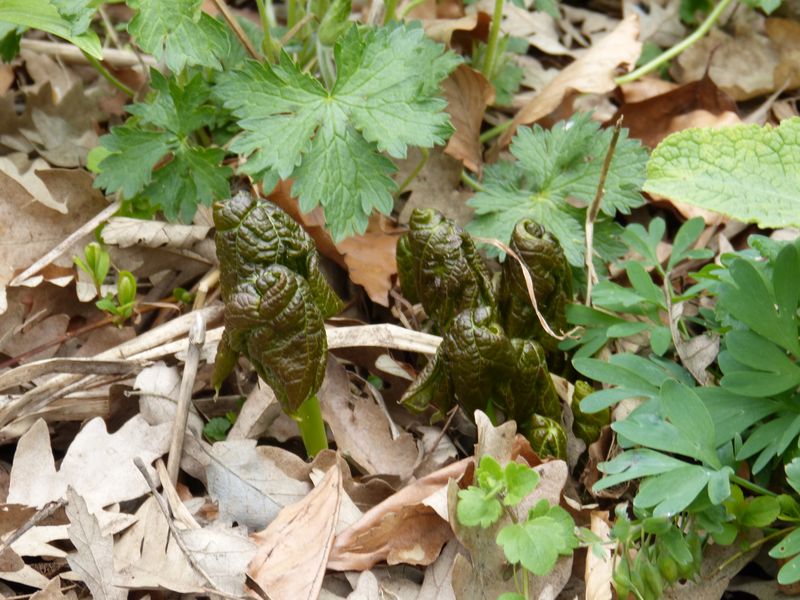 Mit Blüten sind sie aber auch nicht schlechtIch freue mich gerade über Glaucidium palmatum, wenn auch noch ohne Blüte.