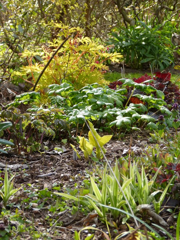 und denke auch, Ninas roter Tulpenpunkt soll unbedingt bleiben.Meine Impressionen sind vom Wochenende bevor dieses unterirdische Wetter ankam.Endlich wieder Grüntöne in den Hostbeeten.