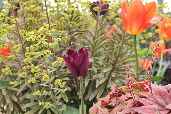 Claire, wunderbare Farbkombination mit Havran, Euphorbia und Heuchera!