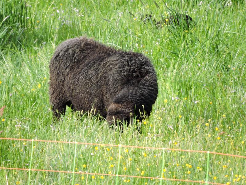 ;DBei uns geht`s ganz gut mit der Nachbarschaft der Schafe aber beschweren können sich die schon auch ganz gut. Sie waren gestern wohl enttäuscht, dass der Schäfer noch nicht umgezäunt hat. Heute morgen dann aber. Der Hund des Schäfers hilft jeweils mit und seine Aktionen sind sehr beeindruckend zum Beobachten, v.a. auch das Zusammenspiel von Schäfer und Hund. Ein kurzes Wort, eine Geste und der Hund weiss was zu tun ist und schiesst los.Vor ca. einer Woche gab`s zwei Junge. Jetzt versinken sie wieder im hohen Gras und sind kaum mehr zu sehen, in etwa drei Tagen wird alles abgefressen sein von knapp 40 Tieren.und schimpft wie ein Kanonenrohr! Die armen Nachbarn.