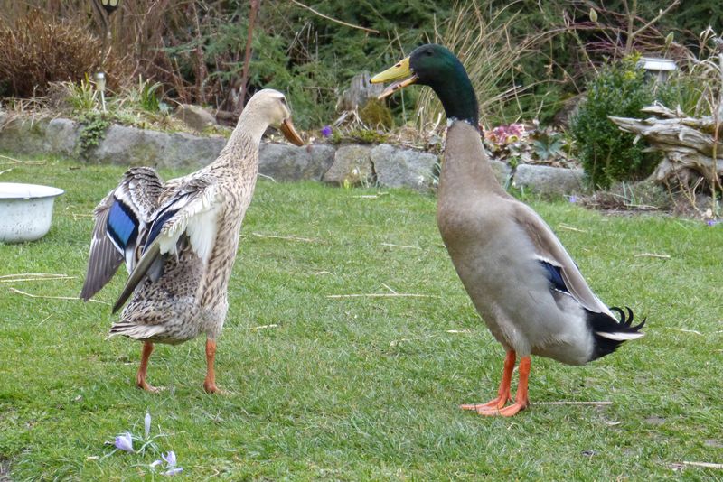 Bei den Laufis ist der Frühling auch angekommen, der Erpel beglückt seine Damen fleißig.