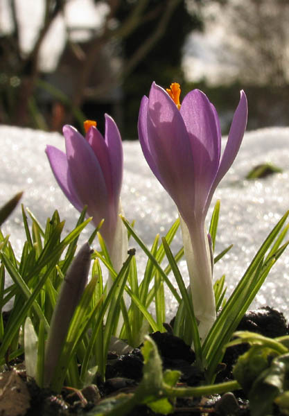 Ich glaubs nicht!!!! Heute morgen habe ich das zwei Winterlinge entdeckt, ganz vorne an der sonnigsten Stelle. Hinten ist ja noch immer Schnee genug. Ach, herrlich