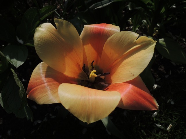 Hm, hier sind jetzt letztes Jahr gepflanzte 'Bronze Charme' aufgeblüht. Die sehen genau so aus... :-\Vielleicht sind das nie 'Bright Gem' gewesen?Ich muss mal ältere Bilder durchforsten, ob diese Tulpen dort drauf sind...Es steht noch ein kleinere Trupp weiter vorne, niedriger, aber mit der gleichen Farbe.Ich habe mich dieses Jahr auch gewundert, die stehen schon seit 2011 im Garten, diese Farbe hatten sie bisher aber nieenaira, das ist ja interessant, dass deine 'Bright Gem' auch so einen starken Rotanteil haben. Ich habe meine schon mehrere Jahre und sie haben immer mehr oder weniger nur (orange-)gelb geblüht. Einen so starken Rotstich wie dieses Jahr hatten sie vorher noch nie.
