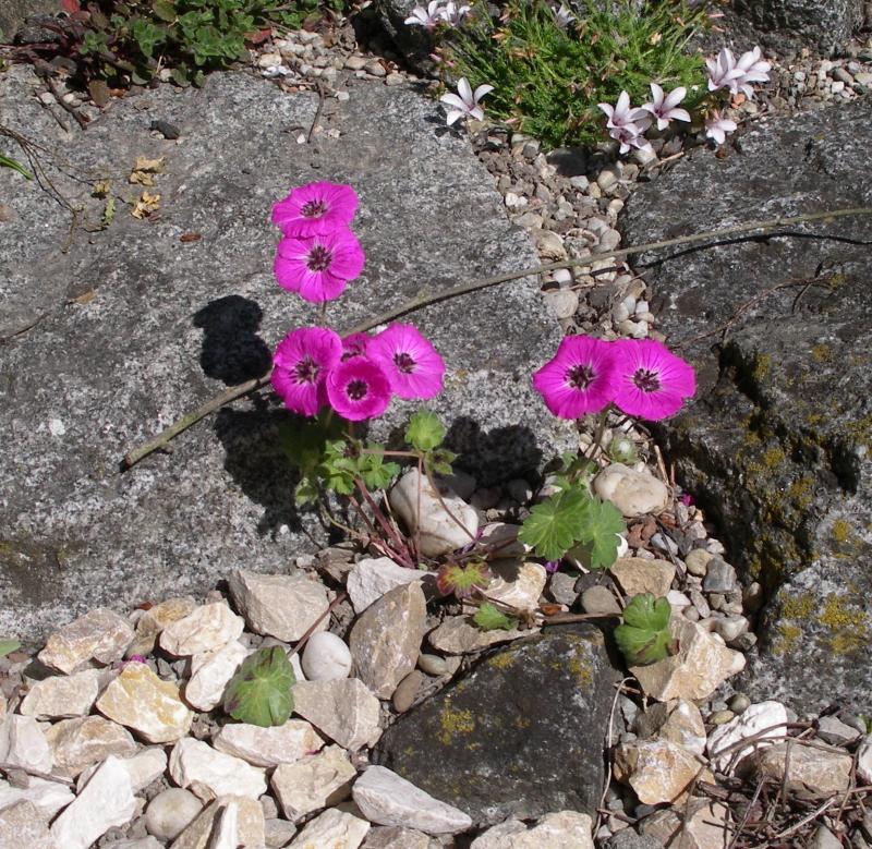 Ja, Myosotis pulvinaris schaut noch ganz gut aus, ist aber bei mir schon abgeblüht.knorbs, jetzt habe ich den Namen dieses auffälligen Geraniums gefunden. Es ist Geranium cinereum 'Splendens'.