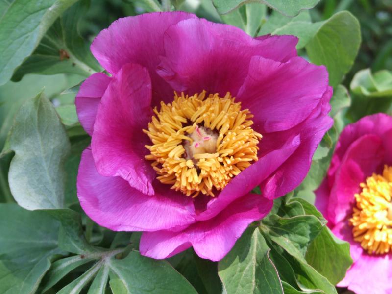die höhe ist kein kriterium, wohl aber die anzahl der terminalblüten + der sekundärblüten.aus Hongs revision zur anomala/intermedia: "Paeonia anomala subsp. veitchii usually possesses 2 to 4 blooming flowers in addition to up to 2 underdeveloped flower buds. Very rarely only the terminal flower blooms in addition to up to 3 flower buds. Paeonia anomala subsp. anomala possesses only a single terminal blooming flower, without or infrequently with 1 to 3 underdeveloped flower buds." bei deiner "veitchii woodwardi" passt eigentlich schon nix zur ssp. veitchii, weil ich nur eine terminalblüte pro stängel erkenne + das ist ein merkmal der ssp. anomala. daher ist man bei der artbezeichnung "anomala" immer auf der richtigen seite, egal welche subspecies oder gar eine vermischung aus beiden unterarten man im garten stehen hat. wie sieht's denn mit sekundärblütenknospen aus?Na gut, obwohl es mich irritiert, dass diese 30 cm hoch ist, die als anomala gekaufte eher 80/90sag einfach P. anomala zu ihr.