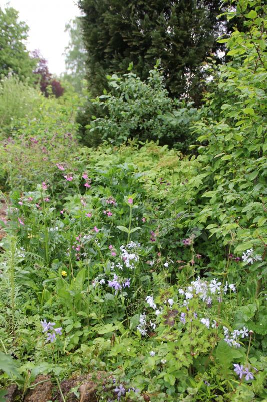 oberhalb des Weges...auch Wald-Charakter, mit aktuell Phlox divaricata, Geranium phaeum und Silene dioica. Mein Maigrün:-)