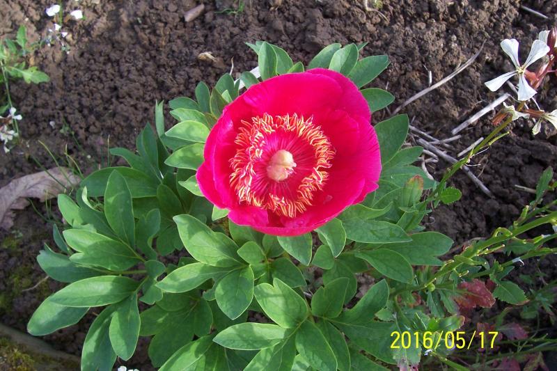 Mir kommt es auch so vor als ob da in einem "Klumpen" zwei Pflanzen waren. Ich mußte da so einen Brutzwiebellauch rauspfriemeln und da ist ein Stück der Päonie abgefallen, eben das anemonenblütige Teil, hat dieses Jahr das erste mal geblüht.Das hier ist das Laub der letztgezeigten Pflanzealso ich hab da ein problem mit deinen gezeigten 2 blütenfotos. für mich sind das 2 verschiedene pflanzen. meine Paeonia officinalis zeigen staubblätter wie auf deinem letzten foto zu sehen...die filamente sind fadenartig dünn, die pollensäcke walzenförmig ohne erkennbares konnektiv (das gewebe zwischen den pollensäcken) + das haben sie über die jahre auch nicht geändert. die filamente der päonie auf deinem 1. foto sind verbreitert + die beiden pollensäcke durch das erkennbare konnektiv getrennt. dadurch entsteht der effekt der "flammenförmigen" staubblätter. genauso wie das bei dem cultivar 'Anemoniflora' eben der fall ist (s. mein foto dazu). zeig bitte mal die ganze pflanze der päonie auf dem letzten foto.