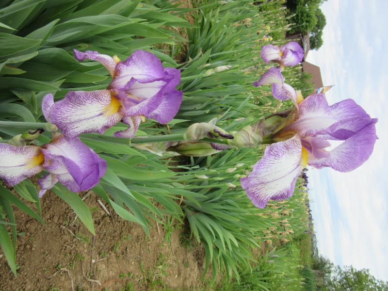 Uralt und ungeschlagen: `Frühlingskleid´, hier äußerst robust! Und irgendwann blieben mal ein paar Rhizome liegen, die sich dann an der Fräse festklebten und übers gesamte neue Irisbeet verteilt wurden. Und natürlich austrieben. Deswegen hier als Irrläufer in jeder fünften Sorte, wobei ich allmählich alle raus habe...