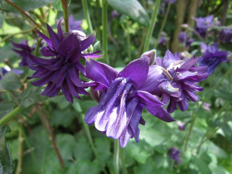 Die blauen Akeleien werden hier immer mehr und es gibt sie in vielen Formen. Hier sind zwei verschiedene durcheinander gewachsen
