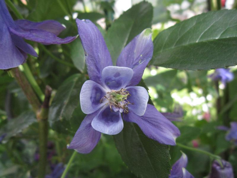 Die blauen Akeleien werden hier immer mehr und es gibt sie in vielen Formen. Hier sind zwei verschiedene durcheinander gewachsen