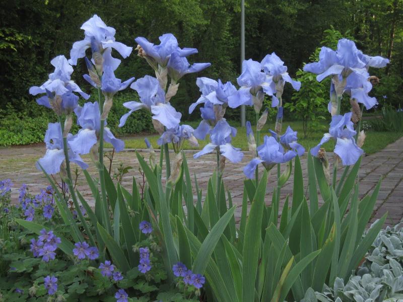 Ja, dachte eigentlich es ist Vollblüte, dabei sind sie tendenziell weniger weit als hier. Das Seltsame dabei ist, dass die Paeonien dafür fortgeschrittener sind als meine. Vielleicht weil die dieses Mal fast ganz oben auf dem doch abschüssigen Gelände stehen. Wo es wärmer ("früher") ist? Während die Iris mehr weiter unten in der "Senke" sitzen.