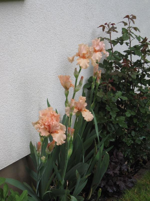 Ja, dachte eigentlich es ist Vollblüte, dabei sind sie tendenziell weniger weit als hier. Das Seltsame dabei ist, dass die Paeonien dafür fortgeschrittener sind als meine. Vielleicht weil die dieses Mal fast ganz oben auf dem doch abschüssigen Gelände stehen. Wo es wärmer ("früher") ist? Während die Iris mehr weiter unten in der "Senke" sitzen.