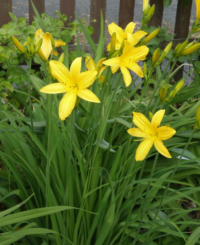 Hier hat als erste Taglilie meine vermeintliche 'Maikönigin' die erste Blüte geöffnet.So spät war sie seit Beginn meiner Aufzeichnungen vor 10 Jahren nur einmal, nämlich 2011.Insgesamt scheint sich das zu wiederholen, was ich schon bei den Strauchpaeonien beobachtet habe: Ganz andere Reihenfolge als sonst.Nach den ausgesprochen frühen Arten ist sonst bei mir 'Orange Prelude' die erste. Bei der sind bislang kaum Knospen erkennbar.Dafür schiebt vor allem 'Reverend Traub' fleißig Stiele.