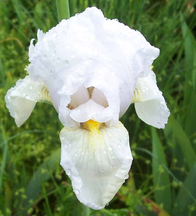 Diese Iris hat nur am ersten Tag eine schöne Blüte, danach ist sie schon rum. Sozusagen die Taglilie unter den Iris und landet demnächst auf dem Kompost.