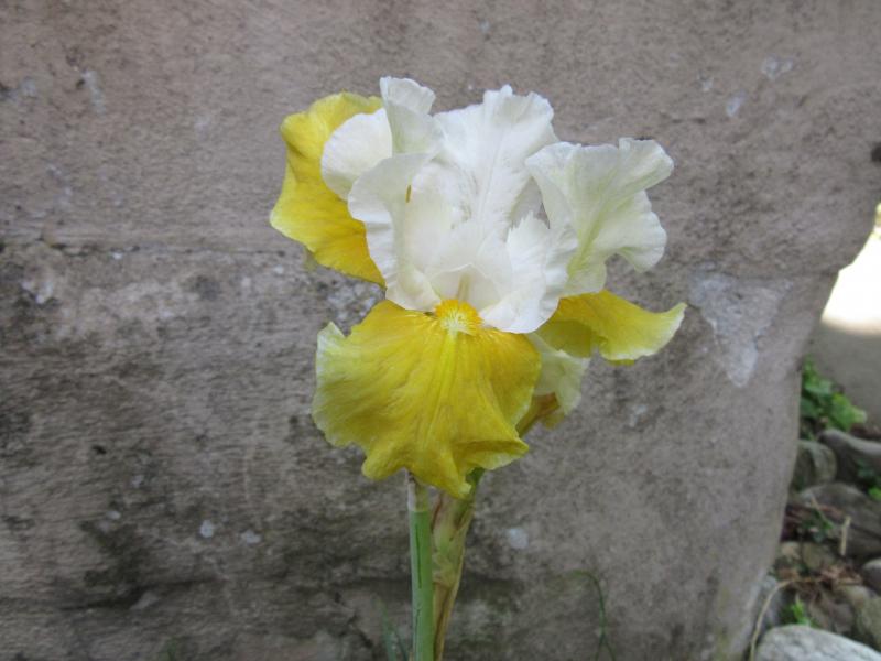 solche Mauern liebe ich!Erfreulicher: die letzte Blüte von IB `Protocol´ (Keppel 1994), steht noch am Haus im Topf. Sehr guter Duft! Habe die versiffteste Mauer auf dem Grundstück nicht gesucht, aber gefunden und als Hintergrund genommen, egal ich lass das jetzt.