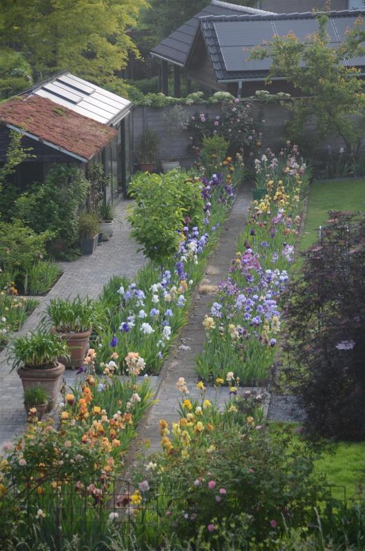 einzelblüten zu fotografieren schaffe ich derzeit nicht, dies ist der alte (noch unverpflanzte) irisbeetteil gestern abend, nach zwei wochen abwesenheit.