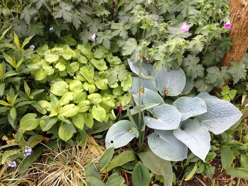 Blattkontraste :-)( das gemussel bitte ignorieren... Die stehen bei mir unter einem alten Kirschbaum und zu dieser zeit sammeln sich immer " schön" die blütenreste in den hosta Blättern