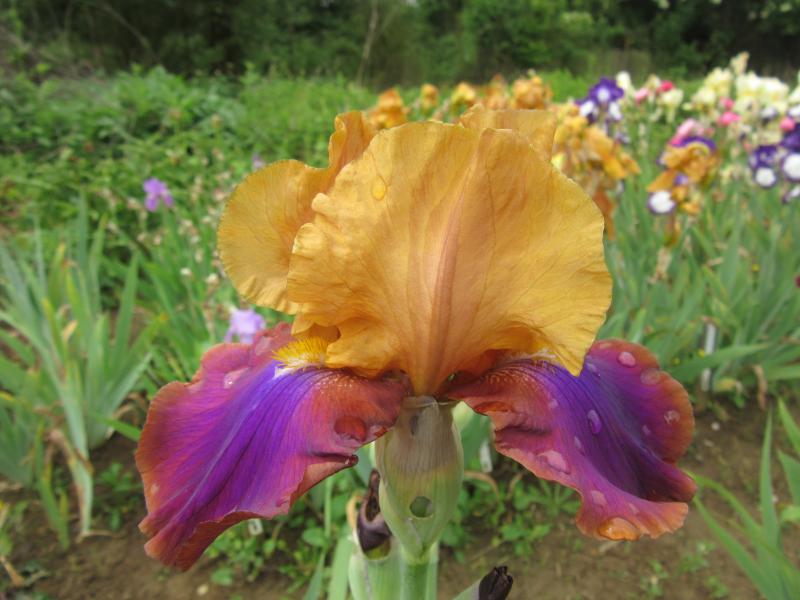 Lange nicht gesehen, nun wieder da `Syncopation´ mit einer noch relativ kleinen Blüte. Davon wuchs hier mal ein Quadratmeter, dem alles was Iris an Schlechtem passieren kann, passiert ist. Ein Rhizom in Kleiner-Finger-Größe hat überlebt und ist auf dem Weg zurück. Nächstes Jahr gibt es hoffentlich wieder das typische Bild der hohen Giganten-Sorten. Immer eine der Letzten die aufgeht.