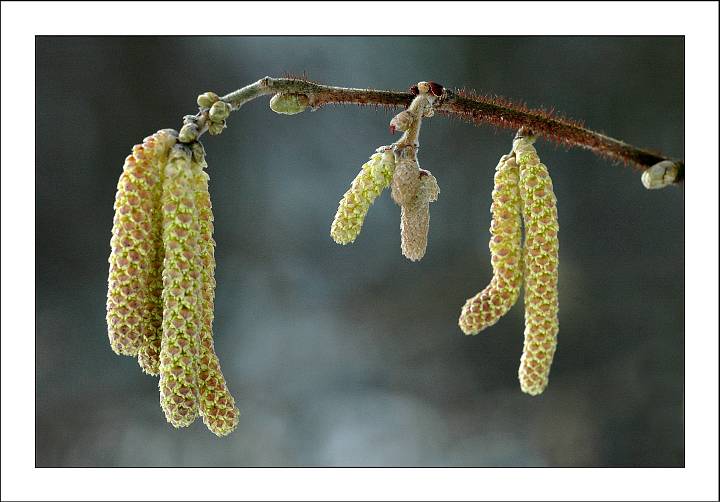 Bei diesem Wetter kann man ja nur grau-in-grau sehen!Die Birken- und Haselkätzchen sind ganz "verkrampft" ...!