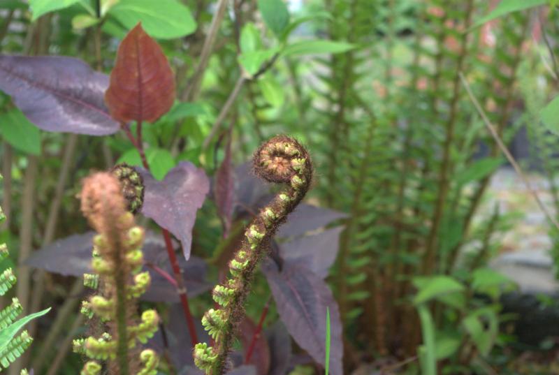 Ein letztes für heute, ein Foto vom Austrieb desAthyrium filix-femina "Rotstiel"