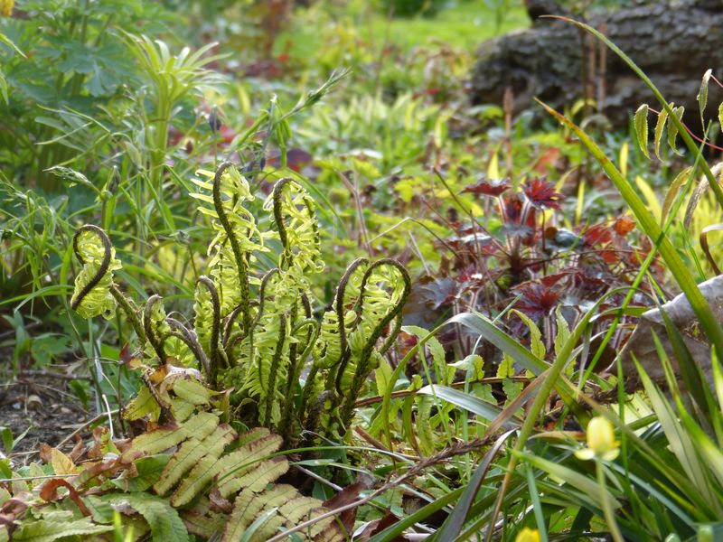 Was ist denn das dunkle im Vordergrund? Mit dem feineren Laub? (Nicht die Heuchera...)Ein Geranium?
