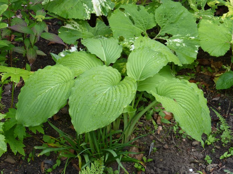 'Niagara Falls' steht dieses Jahr richtig gut da - die Ablenkfütterung mit Petasites japonicus 'Variegatus' scheint zu funkionieren.