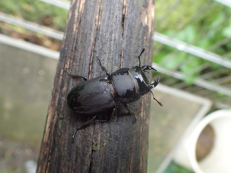 Soeben im Garten am Komposthaufen entdeckt: Hirschkäferweibchen. Offenbar noch sehr jung, also eher ein Fräulein.
