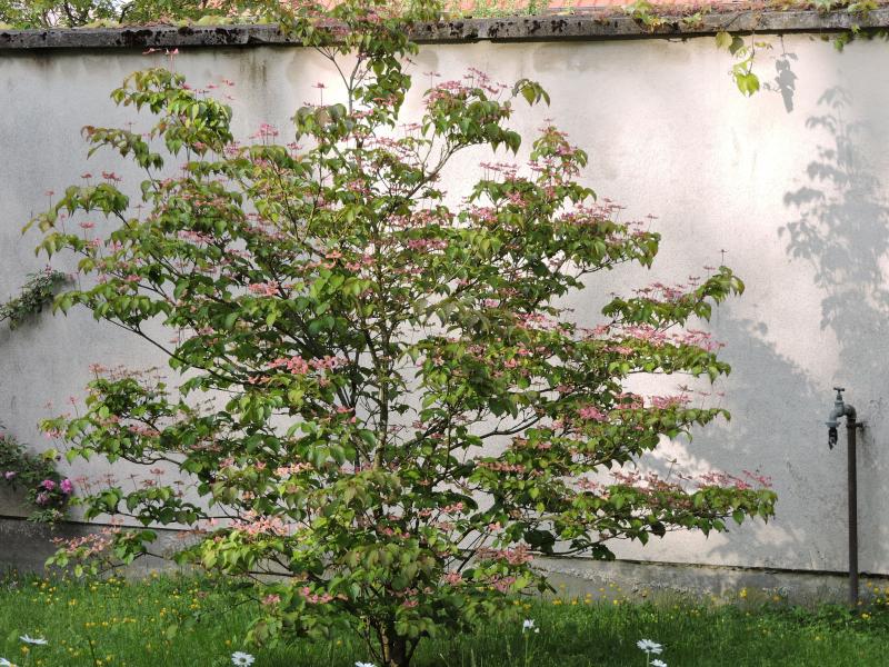 Noch einmal zu Cornus "Venus": Auch im BoGa Bonn ist das hin und wieder beklagte Zusammenrollen der Cornus-Blätter nicht der Fall, obwohl der Strauch vollsonnig steht.