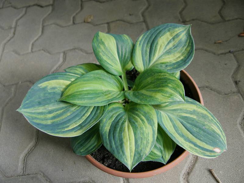 Ok, dann steck das Schild zu der Hosta mit dem breitesten weissen Rand.
