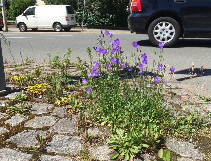 Solche Szenen liebe ich.Glockenblume an ziemlich unwirtlichem Standort