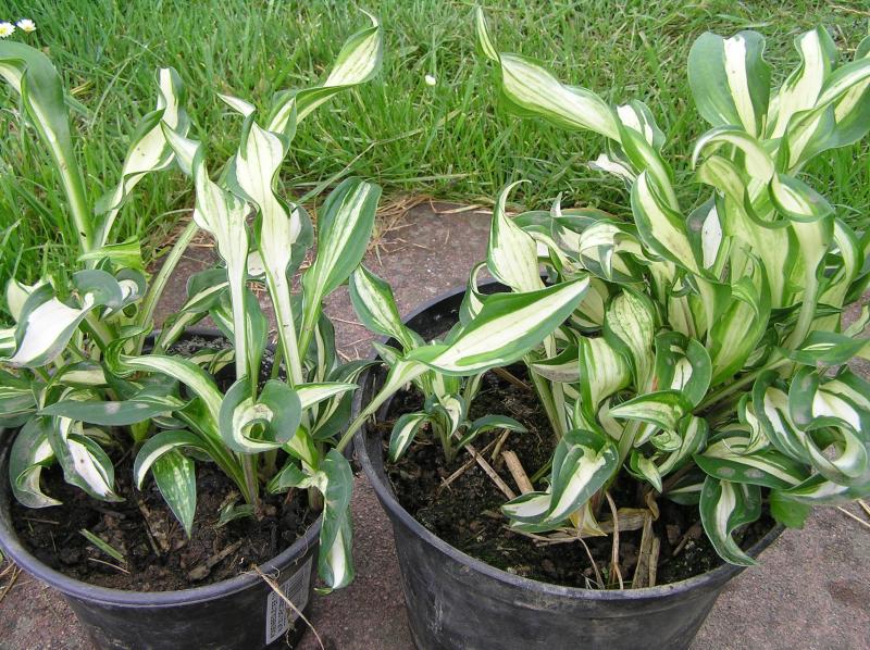 Gefällt mir auch gut mit den gewellten Rändern. Ich habe mal angefangen Hosta in Töpfe zu setzen, weil die Erde einfach zu verwurzelt und zu mies war an der Stelle und dort nix wuchs - dazu kam noch Oile, die auch welche in Töpfen hatte, wegen der Fürsorge eben. Ein tolles Gestaltungselement. Ich finde es gibt keine Pflanze die in Kübeln eine bessere Figur macht als Hosta :DInzwischen funktioniert besagtes Beet auch ohne Hostakübel - die verschwinden dort - ich brauche neue Ideen. Daher stehen sie momentan an den Eingängen herum. Haben dort bis mittags Sonne - das könnte im Hochsommer bestimmt gefährlich werden, oder??