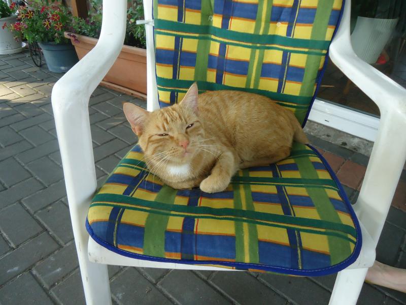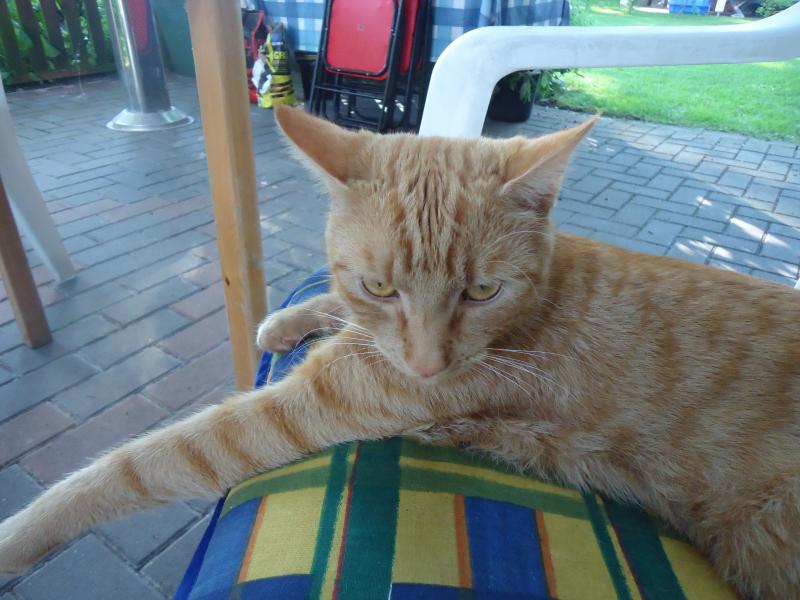 Hier ist und war bestes WetterMaja hat im Schlafzimmer geschlafen. Tagsüber ist sie immer drin und nachts ist sie unterwegs. Willi und Cookie machten es sich aber draußen gemütlich