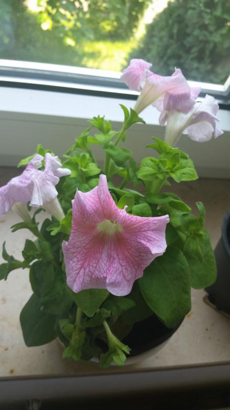 Das ist eine Petunie.Kannst du mit Tagetes zusammenpacken, ob das von den Farben passt ist eine andere Frage.Reichlich Wasser aber nicht nass, gut düngen, abgeblühte Blüten abzupfen.