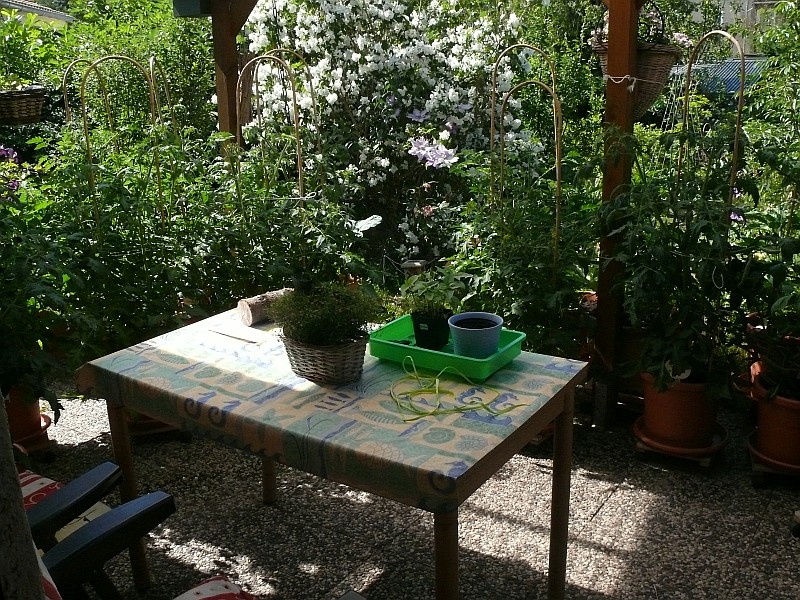 hab gestern mal ausgeduennt, sprich Platz gemacht fuer Windauf dass der meine Tomatenpflaenzchen einigermassen trocken halte,wenn's diese Woche endlich warm - und damit auch schwuel - wird