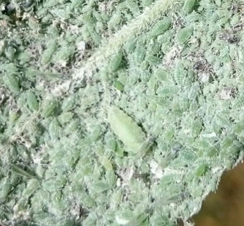 Welches der Dingerchen meintest Du, oile? Hast Du eine größere Aufnahme davon?Manche Schwebfliegenlarven sehen so hellgrün aus. Und fressen auch Blattläuse.